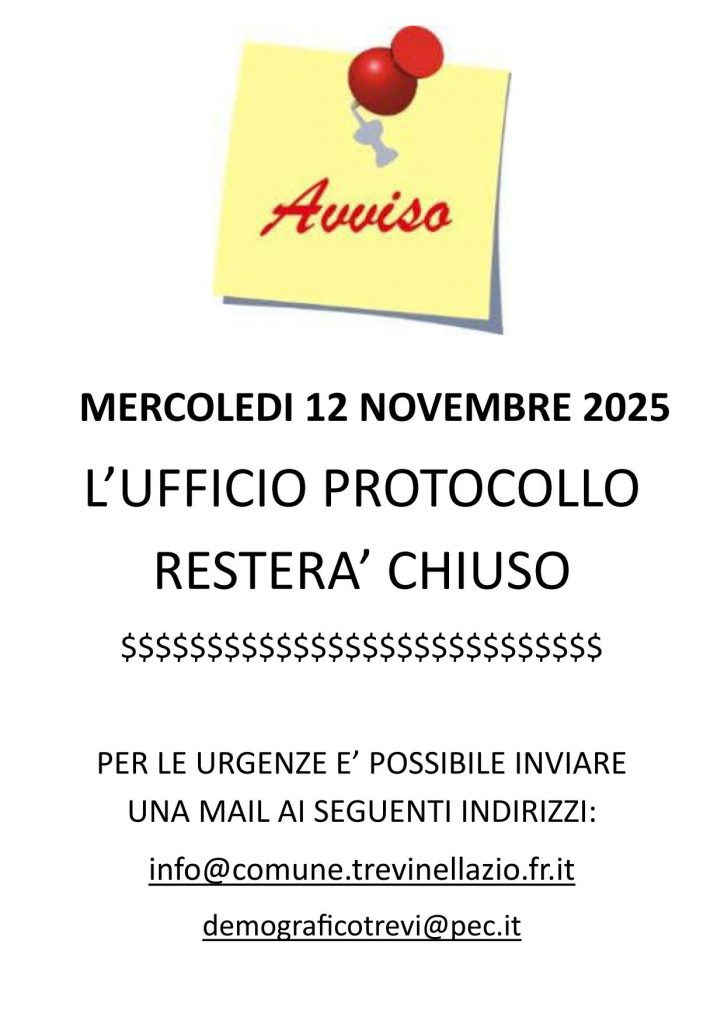 Dal 23 maggio 2025 l’Ufficio postale di Trevi nel Lazio sito in via delle Fornaci resterà chiuso al pubblico.