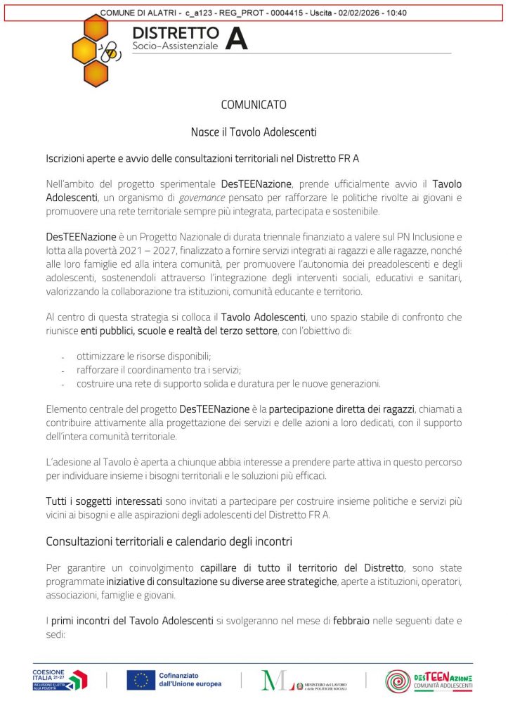 Il Sindaco comunica che domani 28/01/2025 non ci sarà la presenza del personale ACEA. La