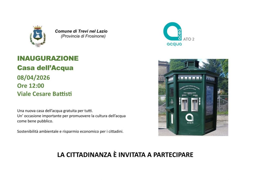SI COMUNICA CHE IL GIORNO 29/05/2025 ACEA ATO 2 AL FINE DI PROCEDERE AD INTERVENTI DI MANUTENZIONE STRAORDINARIA, VOLTI A MIGLIORARE L’EFFICIENZA DEL SERVIZIO, SOSPENDERÀ IL FLUSSO IDRICO IN ALCUNE ZONE DEL COMUNE DI TREVI NEL LAZIO, DALLE ORE 08:30 ALLE ORE 19:30.