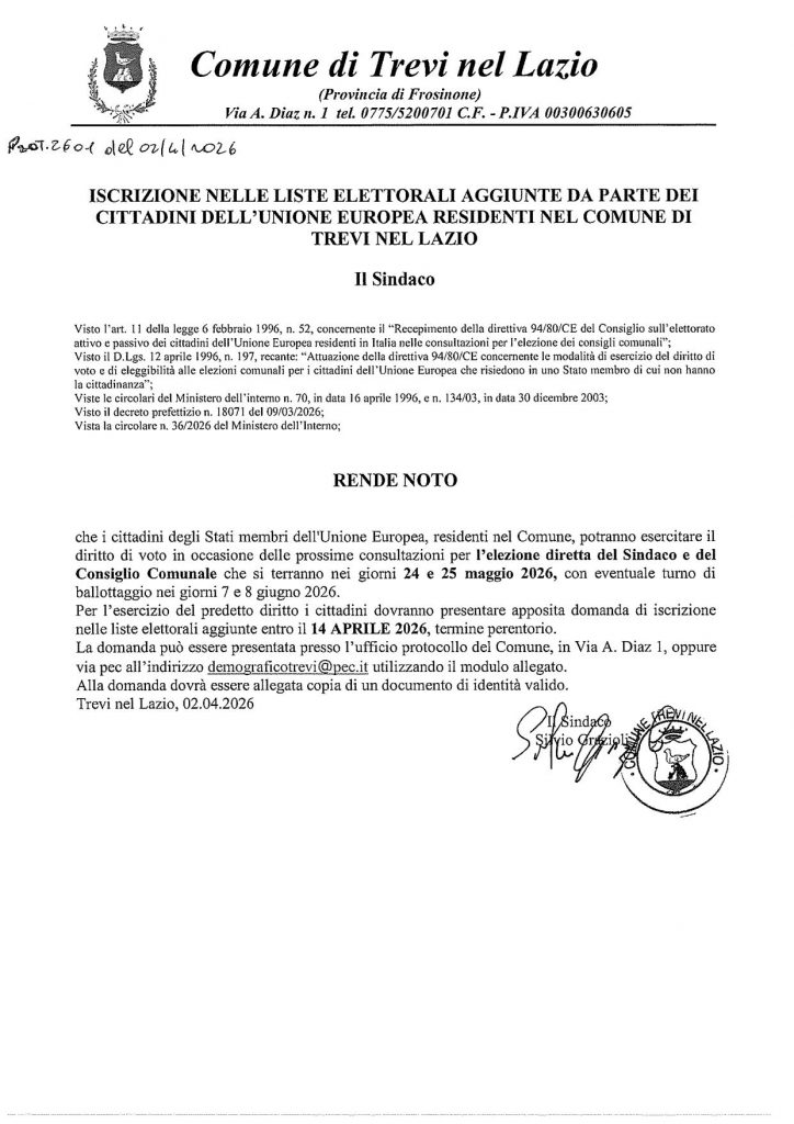 ELEZIONI AMMINISTRATIVE 2026